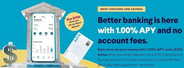 Earn more on your money with 1.00% APY and a $100 bonus when you direct eolith into a SoFi Checking and Savings account. Plus, pay no account or overdraft fees, get 2-day-early-paycheck, and more.